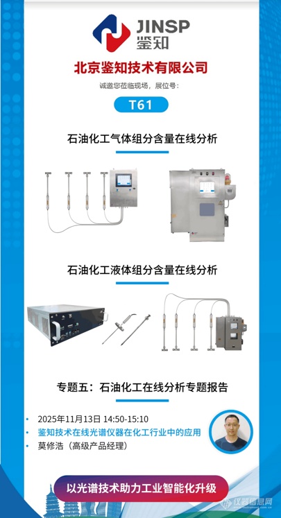 鉴知技术将携多款分析仪器亮相本次展会(展位号:T61),致力于为流程工业的精准控制与智能化升级,提供高性能、高稳定性的分析工具与系统方案。